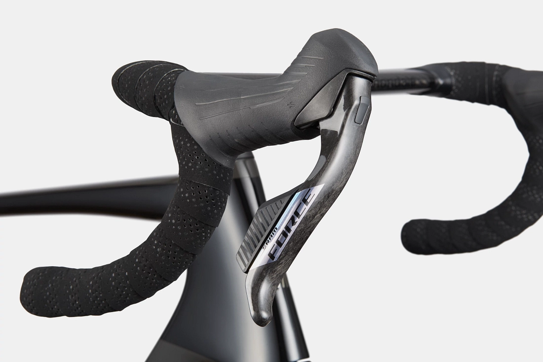 Hi-MOD carbon speed with breakaway ambition. The superlight Gen 5 Hi-MOD carbon frame pairs with the aero-optimized System Road cockpit and Reserve 57|64 carbon wheels on DT Swiss 240 hubs to deliver an incredible balance of weight and aero efficiency. SRAM Force AXS with integrated power meter offers wireless shifting and real-time data. Force hydraulic disc brakes maintain composure when speeds rise. Built for riders who attack, and attack again.