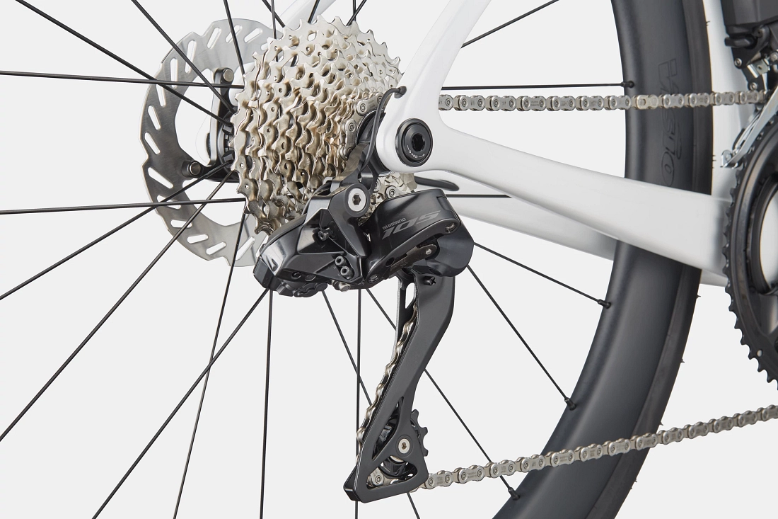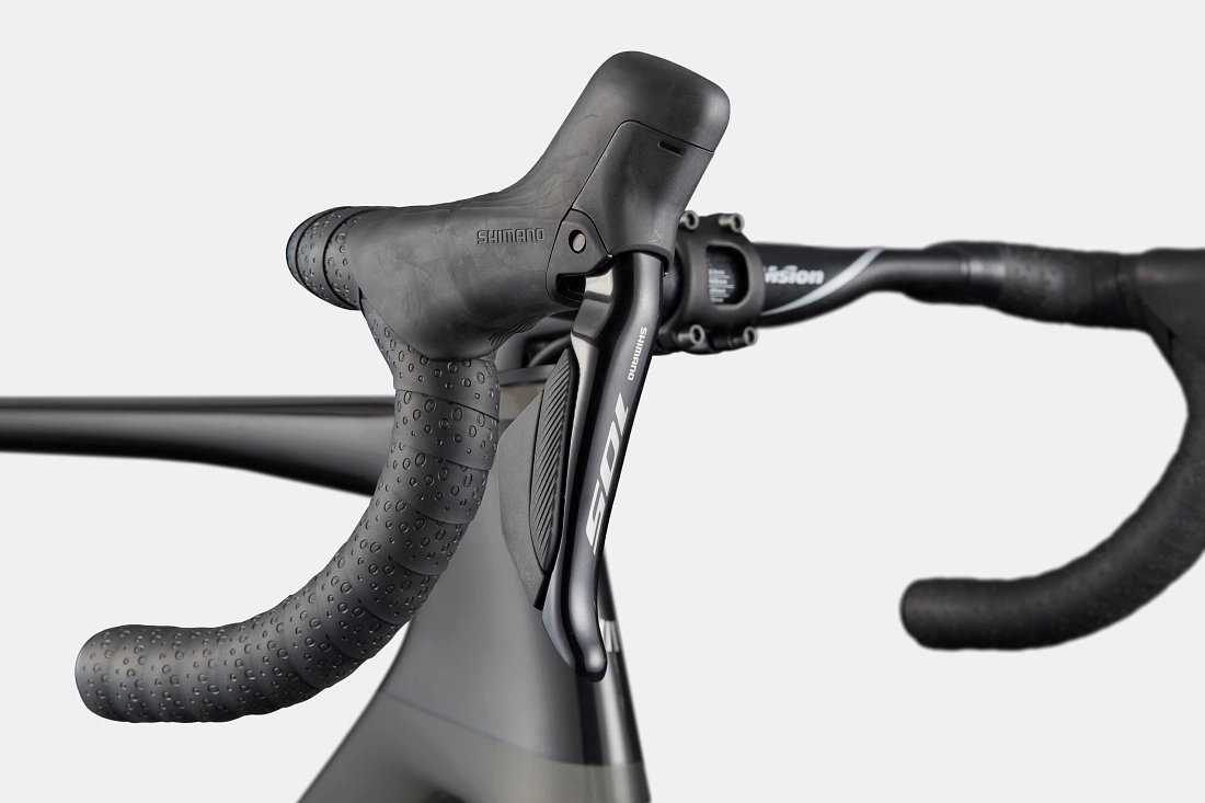 Elektronisk præcision møder gennemprøvet løbsgeometri. SuperSix EVO 5 kombinerer den lette Gen 5-kulfiberramme med Shimanos 105 Di2 elektroniske gearskift og Visions racerklare SC45-kulhjul. Vision Trimax Aero-styr med vores Conceal-frempind og Delta-styrfittings holder fronten ren. En rolig, imponerende og utrolig hurtig platform for ryttere, der vil tage deres præstation til næste niveau.